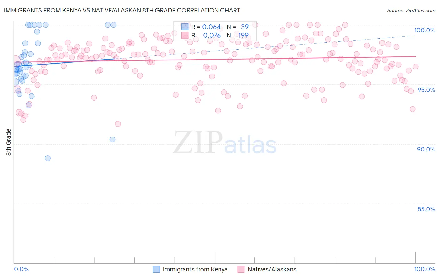 Immigrants from Kenya vs Native/Alaskan 8th Grade