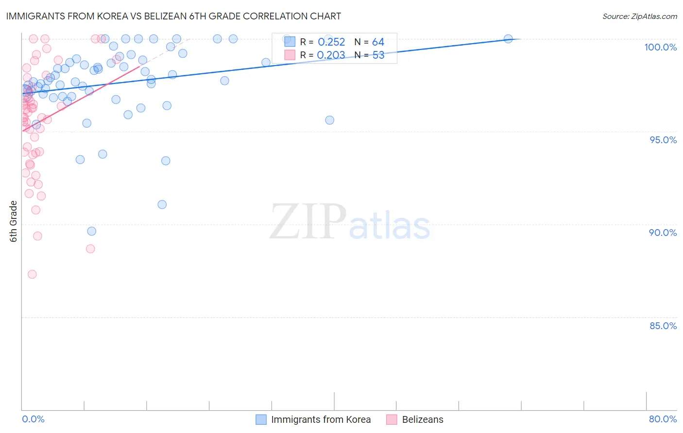 Immigrants from Korea vs Belizean 6th Grade Correlation Chart