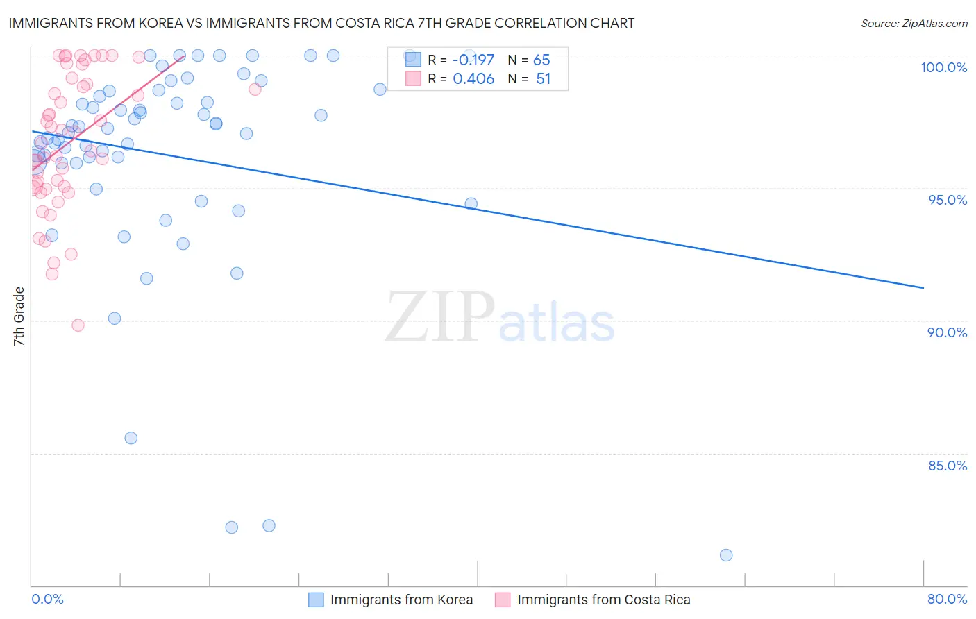 Immigrants from Korea vs Immigrants from Costa Rica 7th Grade Correlation Chart