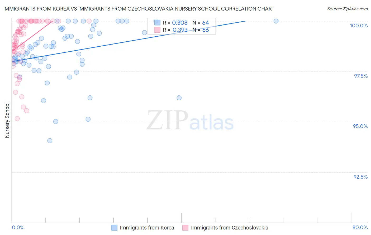 Immigrants from Korea vs Immigrants from Czechoslovakia Nursery School Correlation Chart