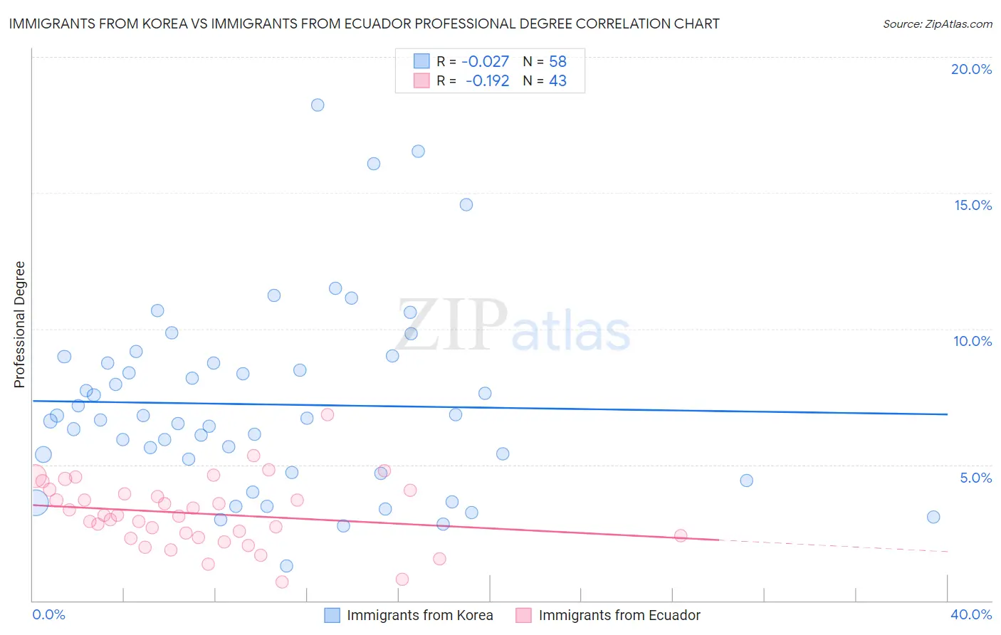 Immigrants from Korea vs Immigrants from Ecuador Professional Degree Correlation Chart