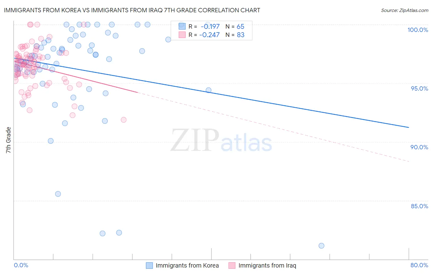 Immigrants from Korea vs Immigrants from Iraq 7th Grade Correlation Chart
