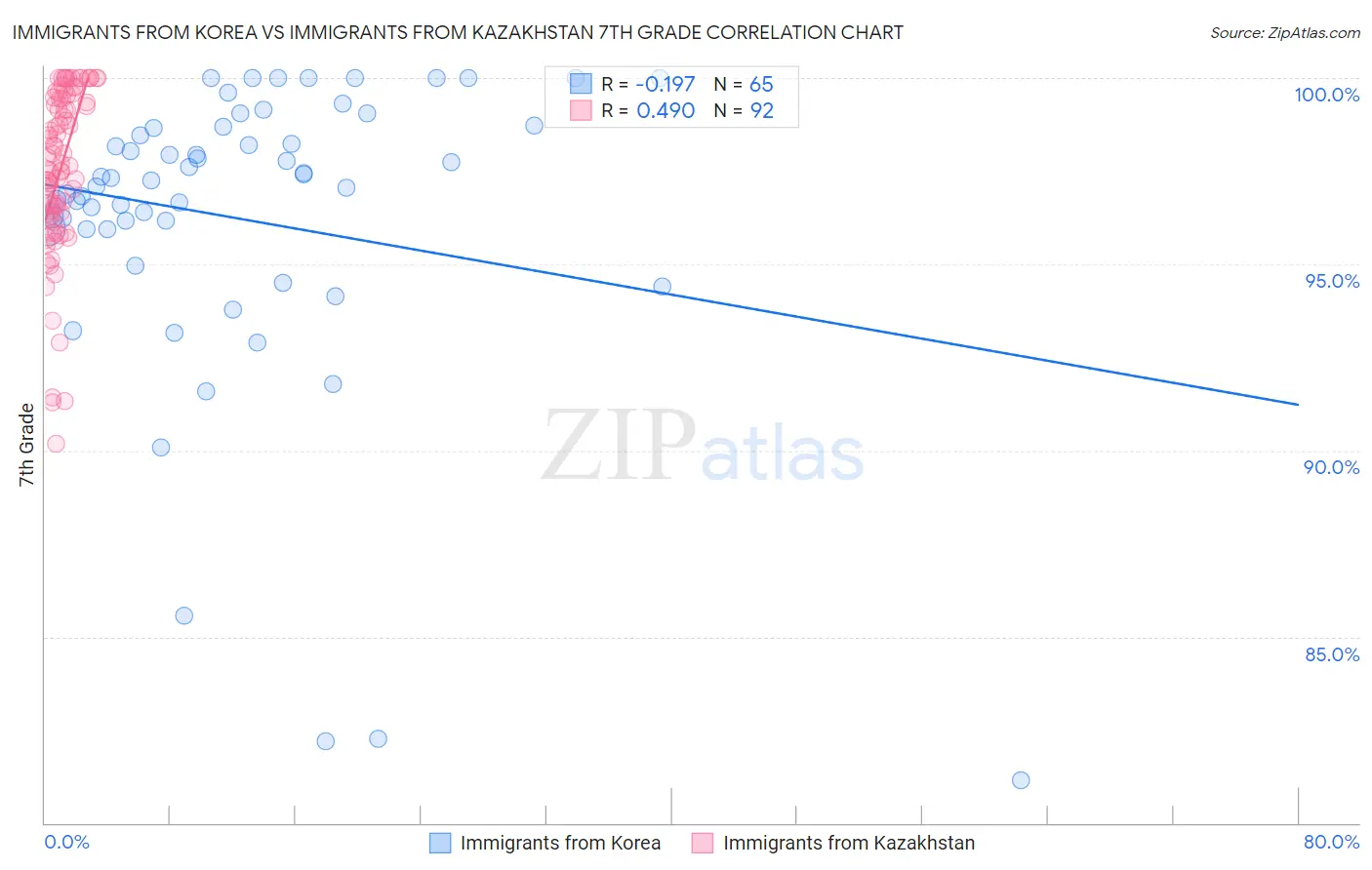 Immigrants from Korea vs Immigrants from Kazakhstan 7th Grade Correlation Chart