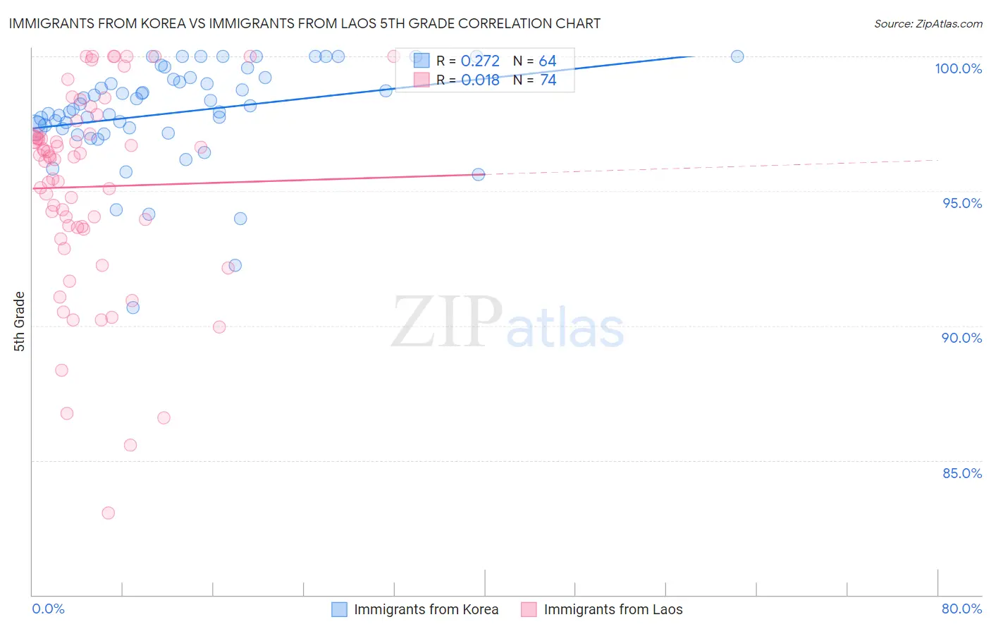 Immigrants from Korea vs Immigrants from Laos 5th Grade Correlation Chart