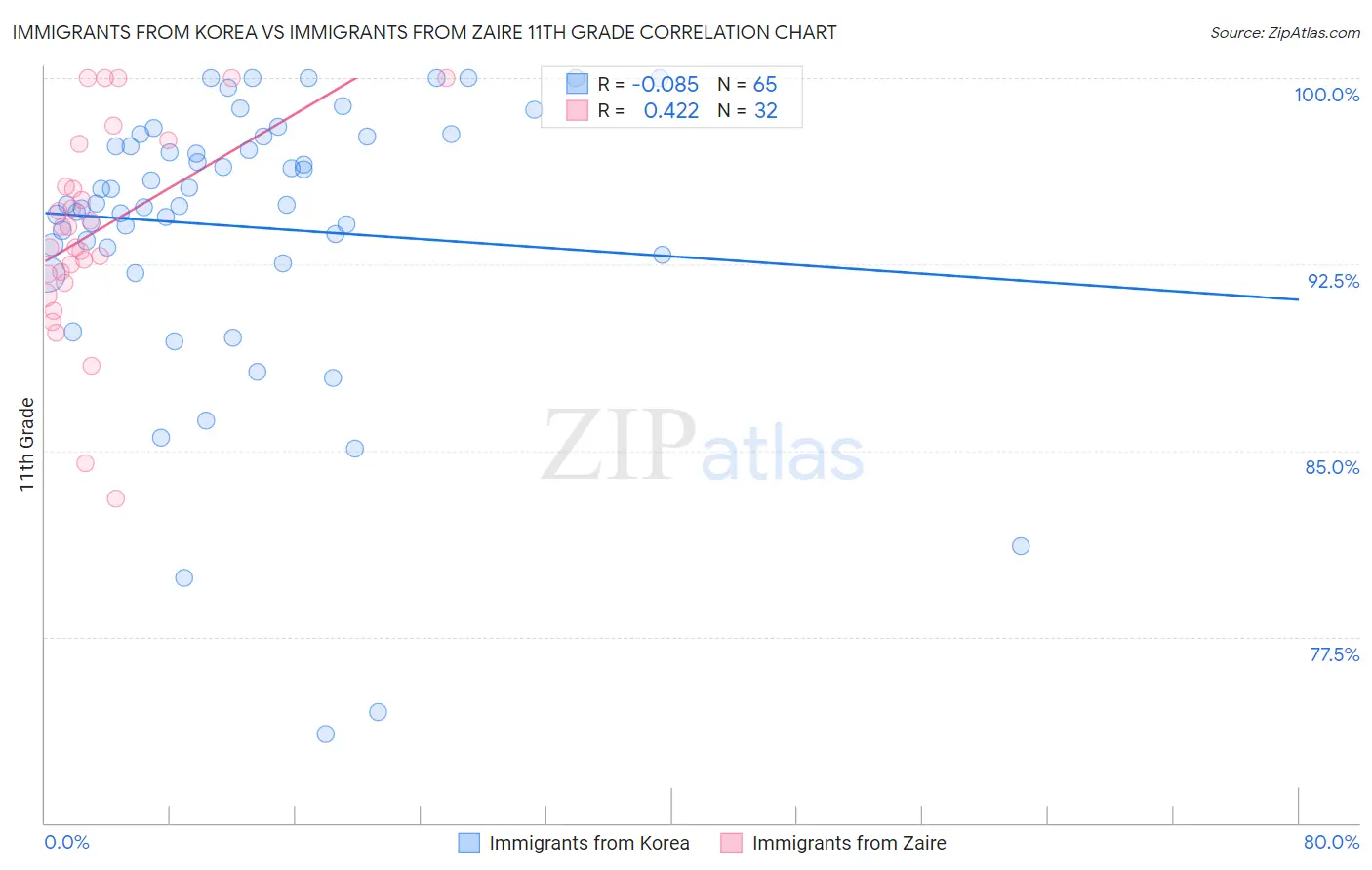 Immigrants from Korea vs Immigrants from Zaire 11th Grade Correlation Chart