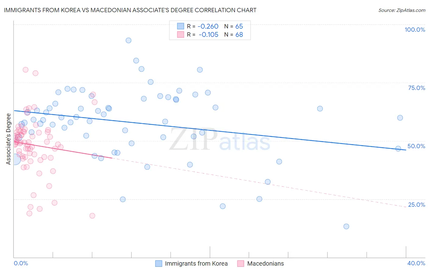 Immigrants from Korea vs Macedonian Associate's Degree Correlation Chart