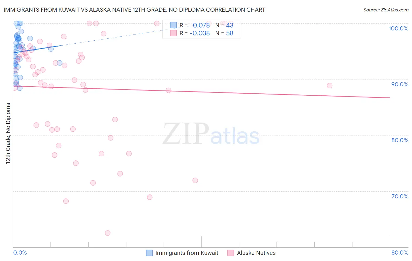 Immigrants from Kuwait vs Alaska Native 12th Grade, No Diploma Correlation Chart