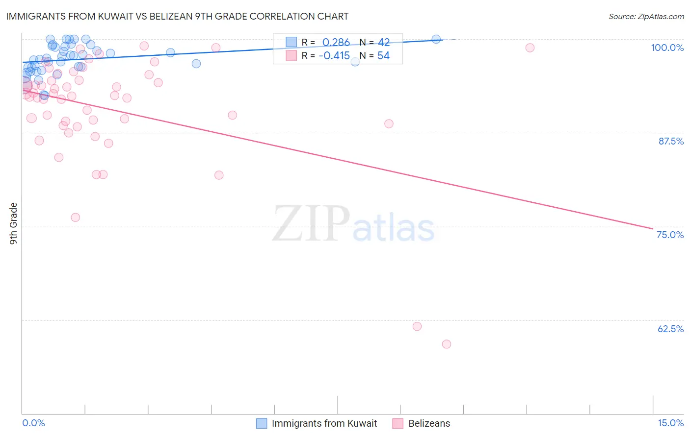Immigrants from Kuwait vs Belizean 9th Grade Correlation Chart