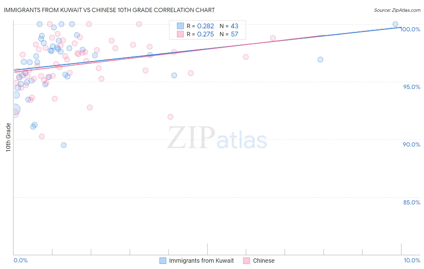 Immigrants from Kuwait vs Chinese 10th Grade Correlation Chart