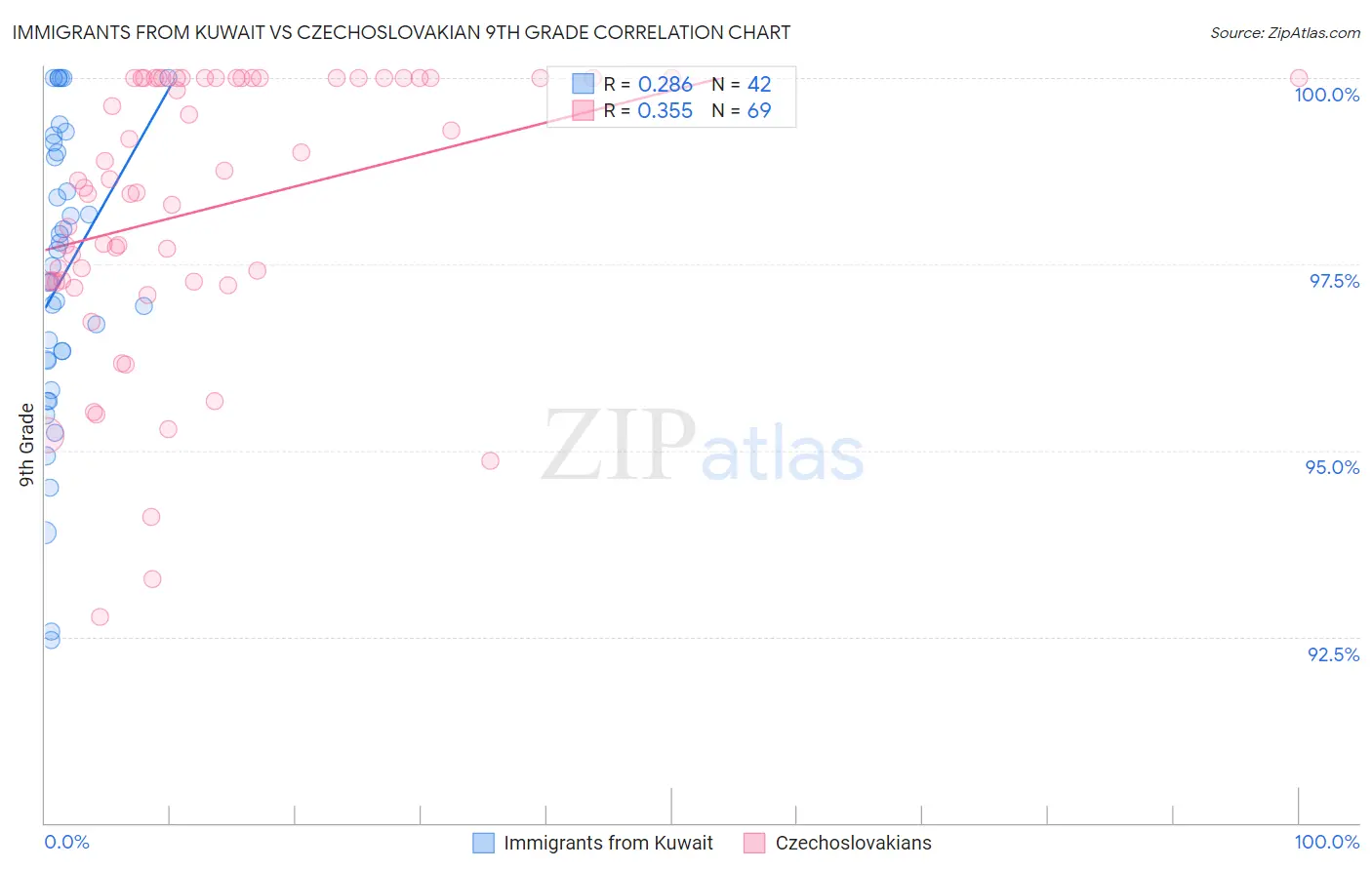Immigrants from Kuwait vs Czechoslovakian 9th Grade Correlation Chart
