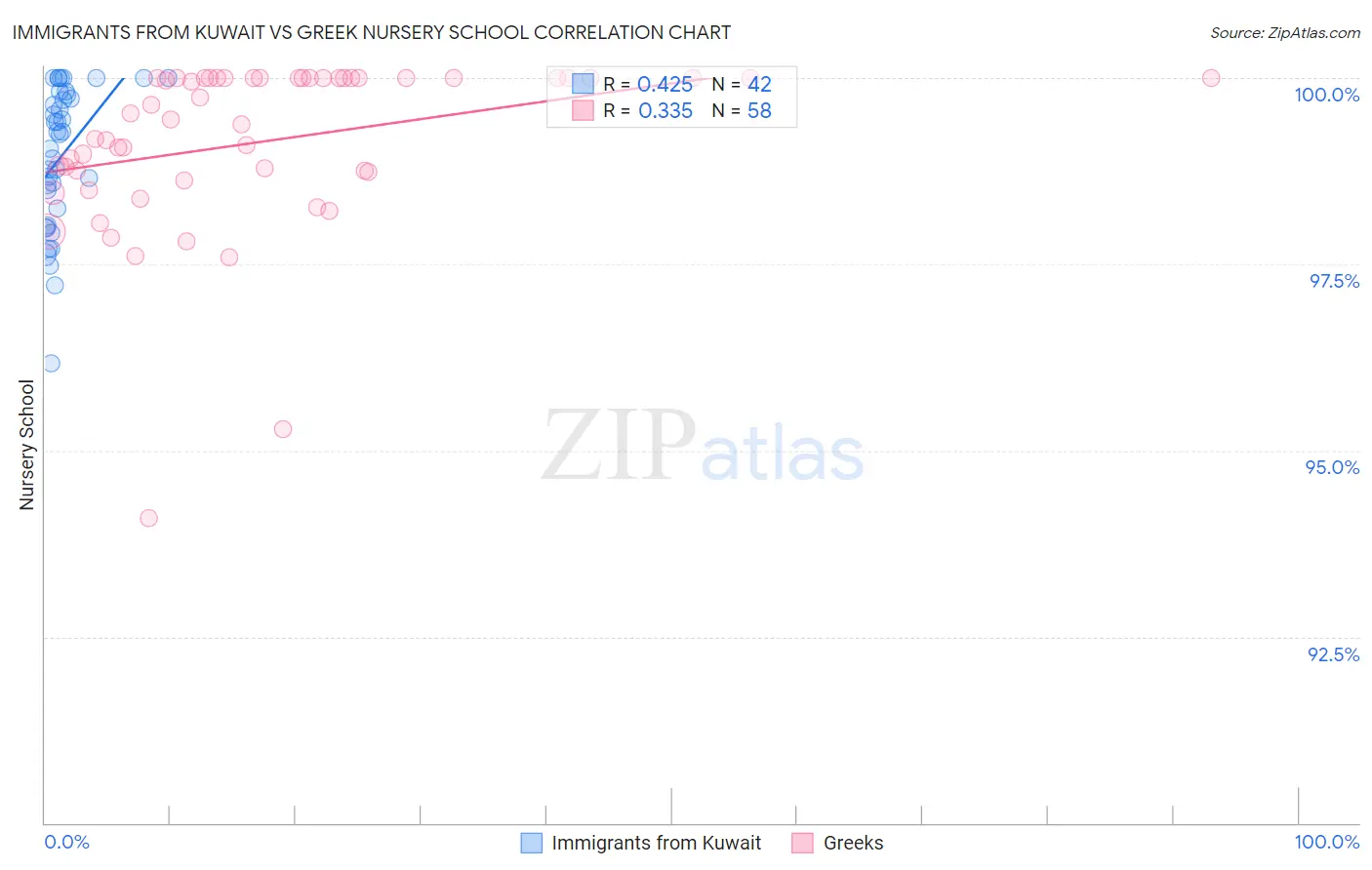 Immigrants from Kuwait vs Greek Nursery School Correlation Chart