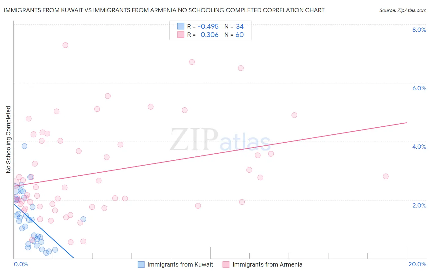 Immigrants from Kuwait vs Immigrants from Armenia No Schooling Completed Correlation Chart