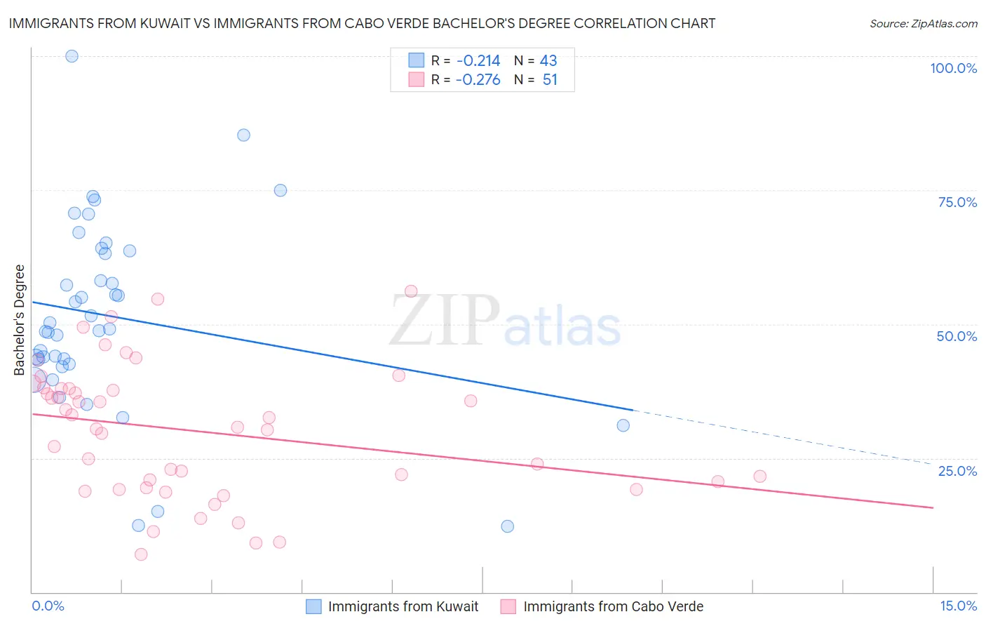 Immigrants from Kuwait vs Immigrants from Cabo Verde Bachelor's Degree Correlation Chart