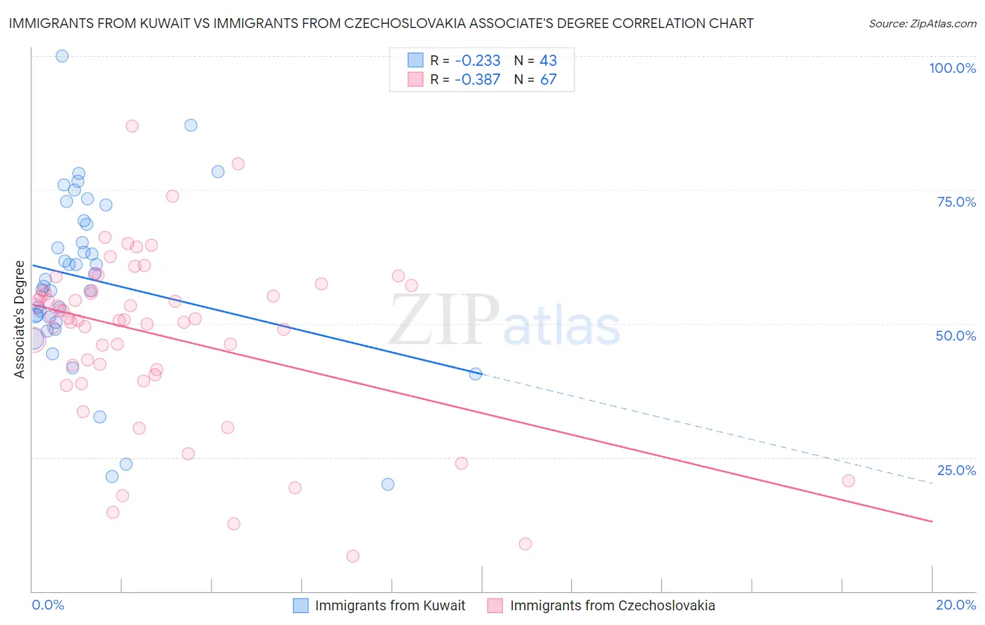 Immigrants from Kuwait vs Immigrants from Czechoslovakia Associate's Degree Correlation Chart