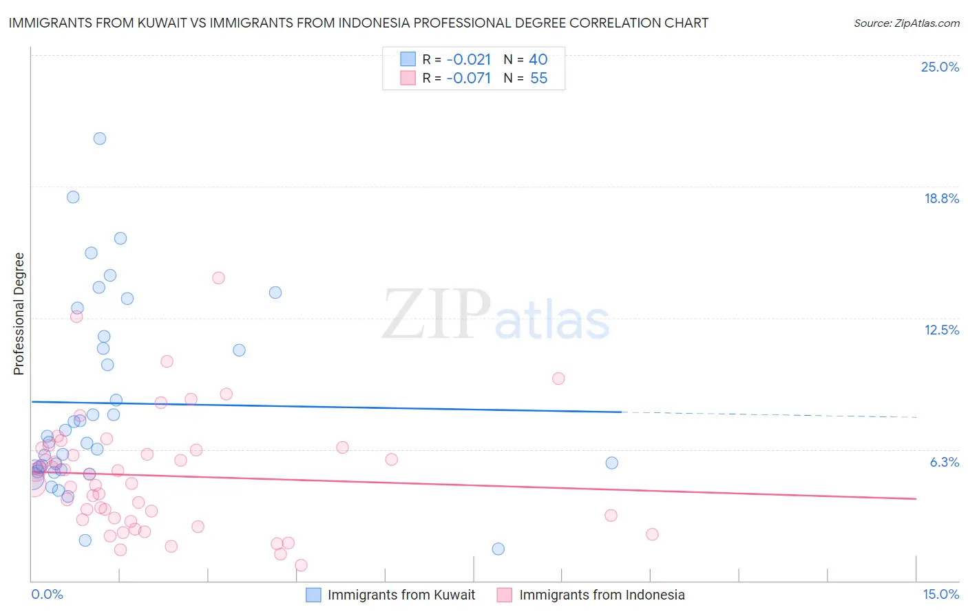 Immigrants from Kuwait vs Immigrants from Indonesia Professional Degree Correlation Chart