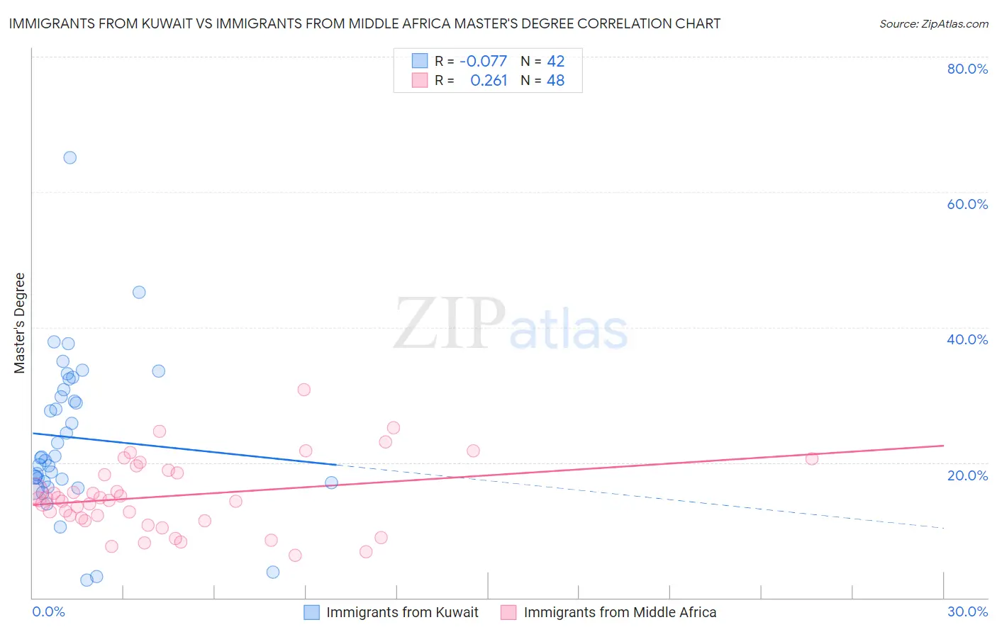 Immigrants from Kuwait vs Immigrants from Middle Africa Master's Degree Correlation Chart
