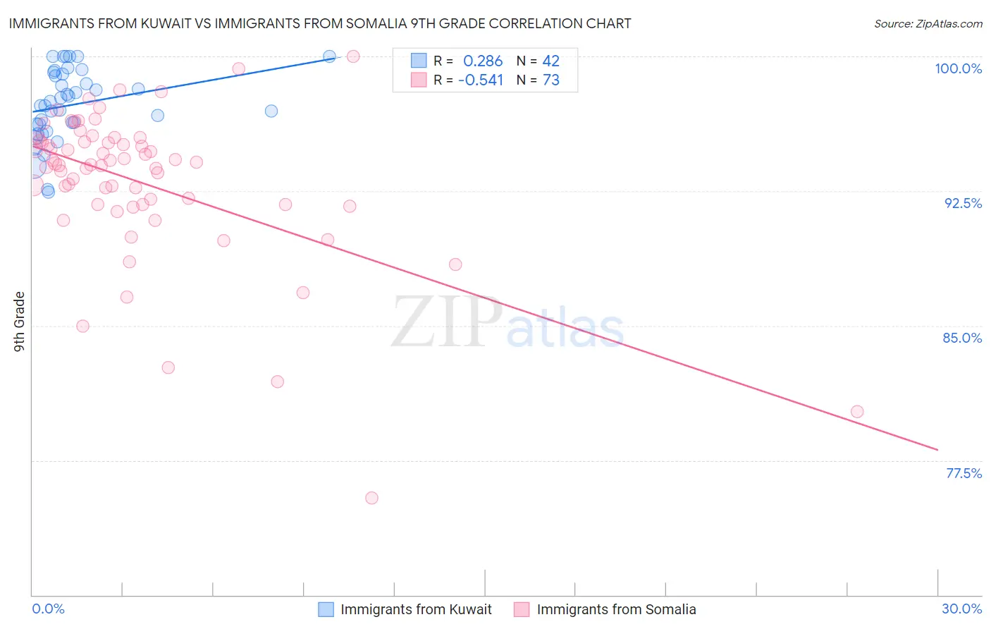 Immigrants from Kuwait vs Immigrants from Somalia 9th Grade Correlation Chart