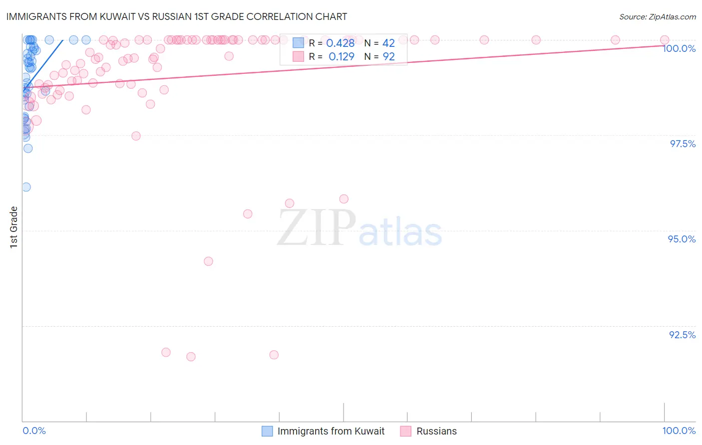 Immigrants from Kuwait vs Russian 1st Grade Correlation Chart
