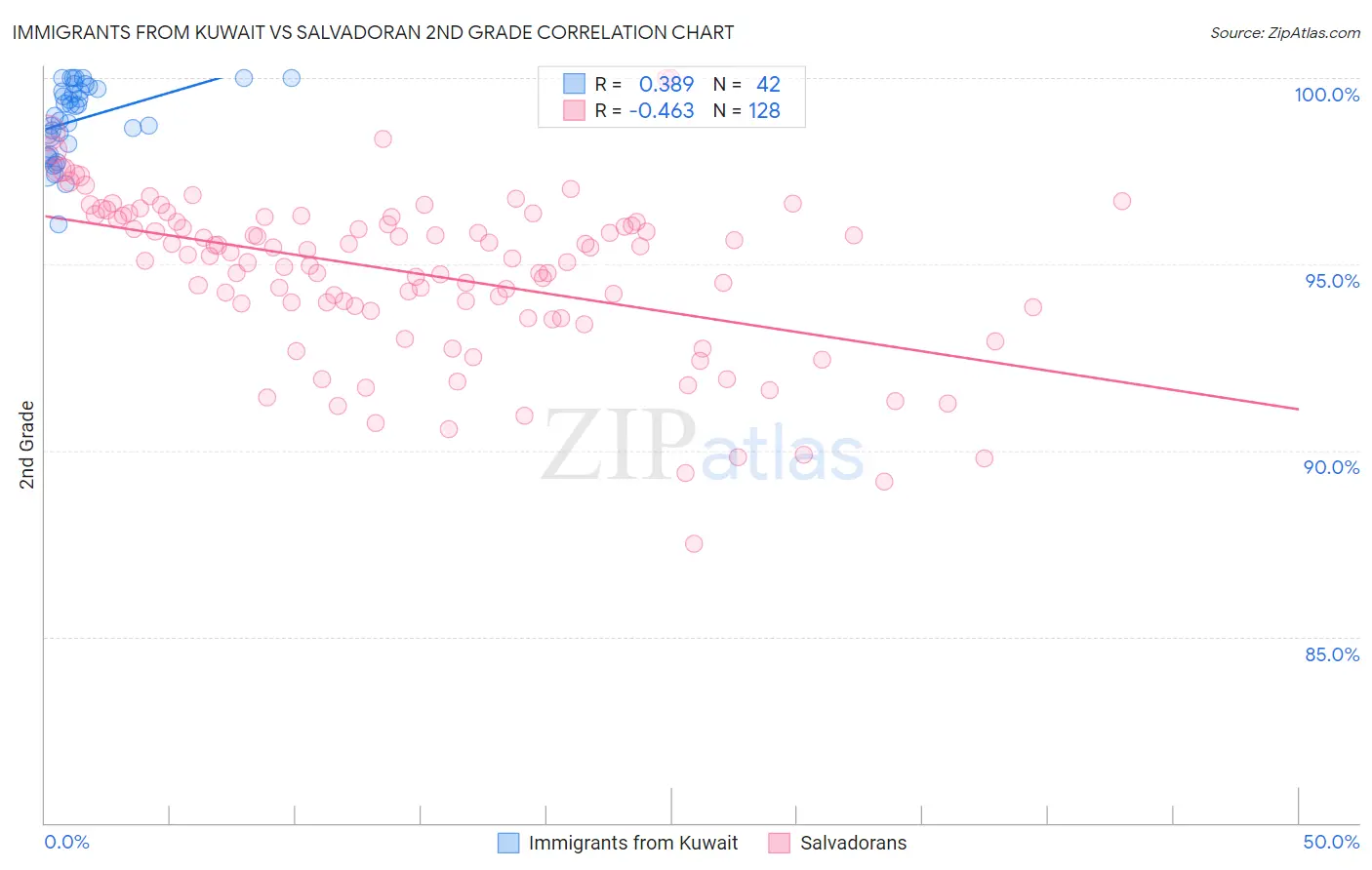 Immigrants from Kuwait vs Salvadoran 2nd Grade Correlation Chart