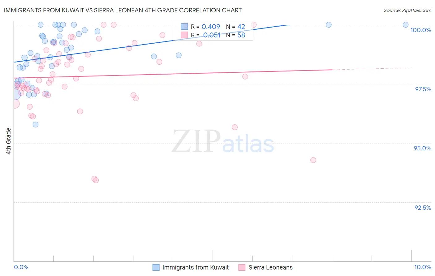 Immigrants from Kuwait vs Sierra Leonean 4th Grade Correlation Chart