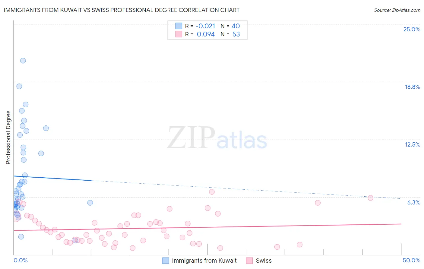 Immigrants from Kuwait vs Swiss Professional Degree Correlation Chart