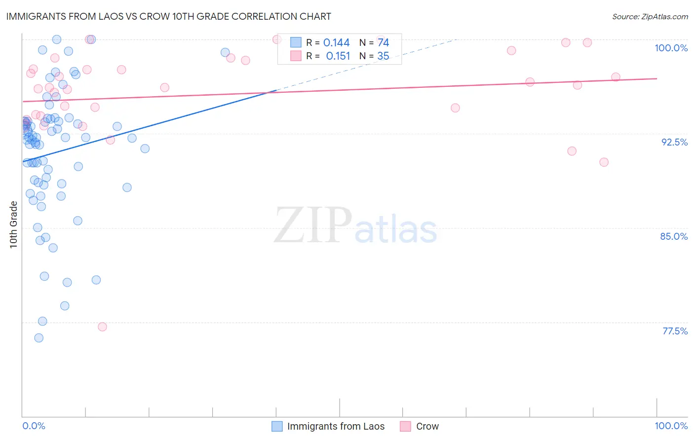 Immigrants from Laos vs Crow 10th Grade Correlation Chart