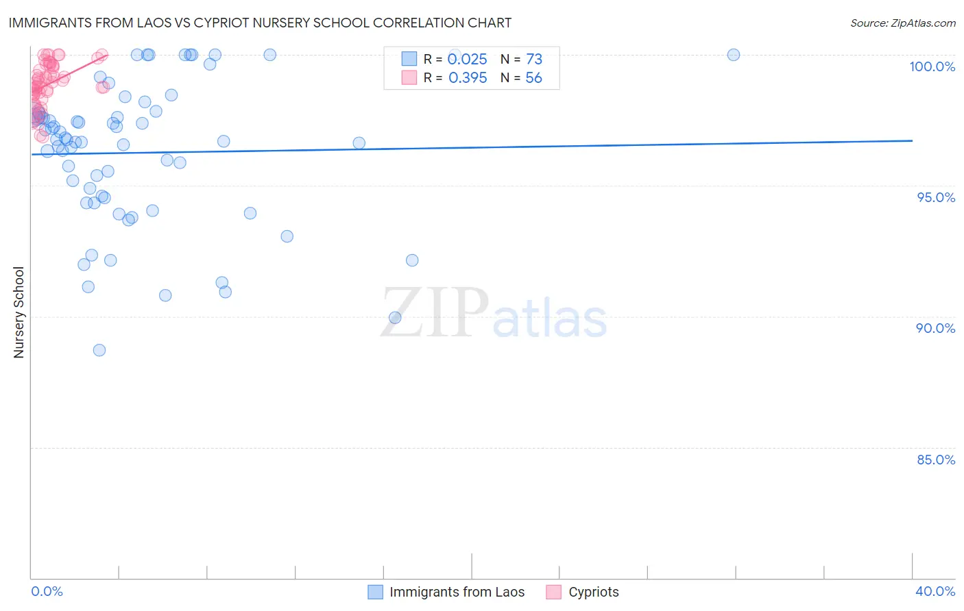 Immigrants from Laos vs Cypriot Nursery School Correlation Chart