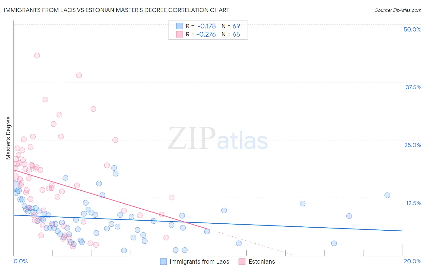 Immigrants from Laos vs Estonian Master's Degree Correlation Chart