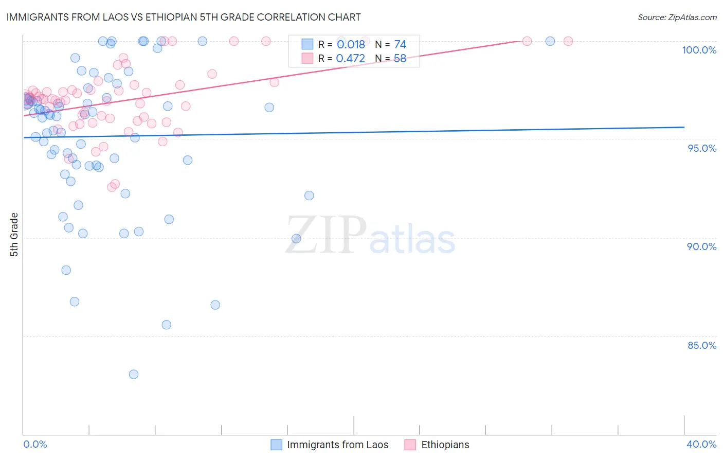 Immigrants from Laos vs Ethiopian 5th Grade Correlation Chart