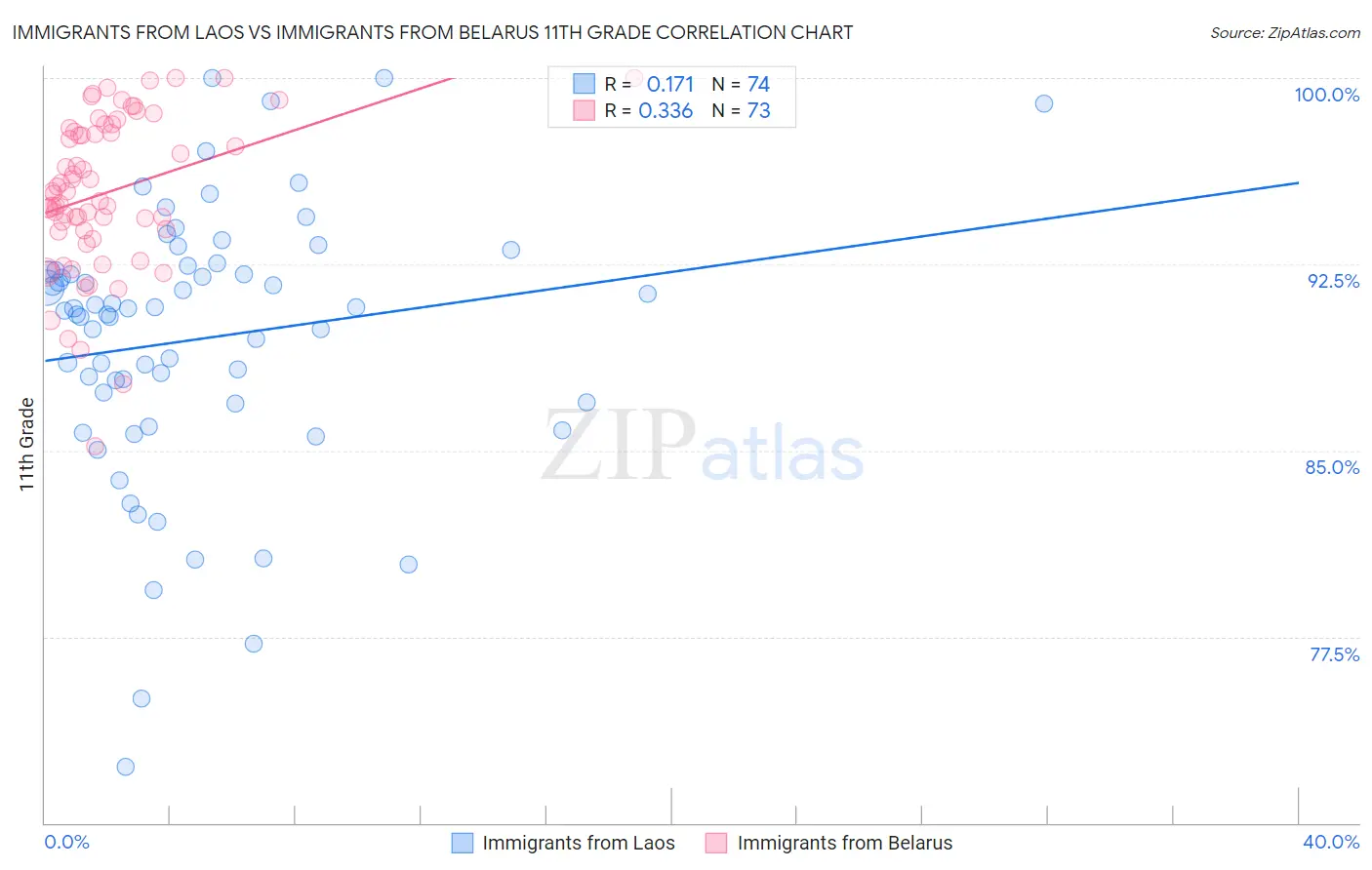 Immigrants from Laos vs Immigrants from Belarus 11th Grade Correlation Chart