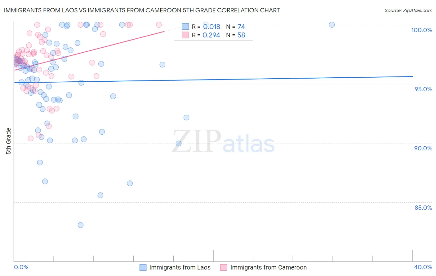 Immigrants from Laos vs Immigrants from Cameroon 5th Grade Correlation Chart