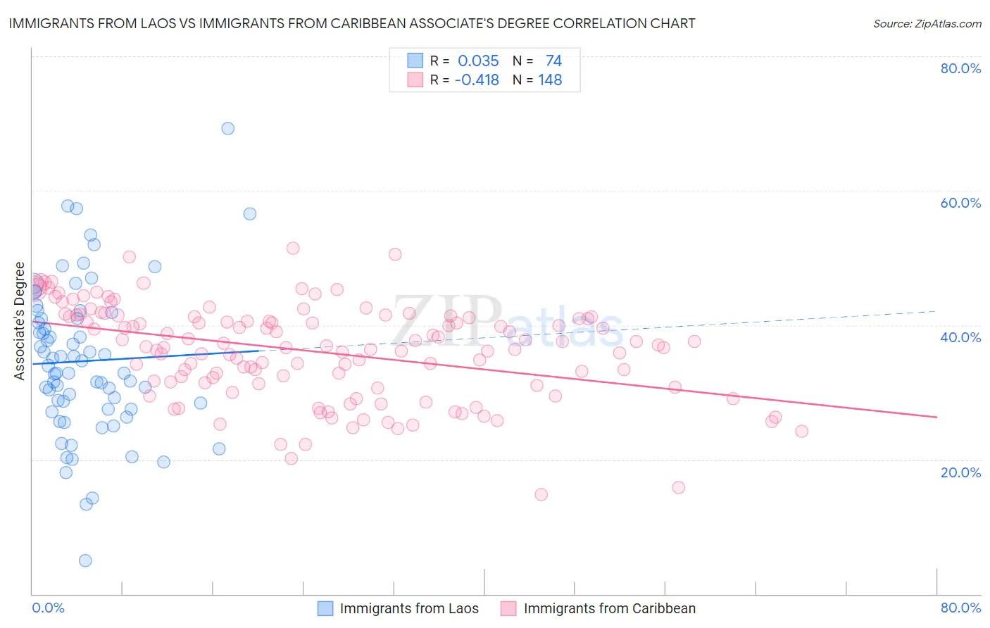 Immigrants from Laos vs Immigrants from Caribbean Associate's Degree Correlation Chart