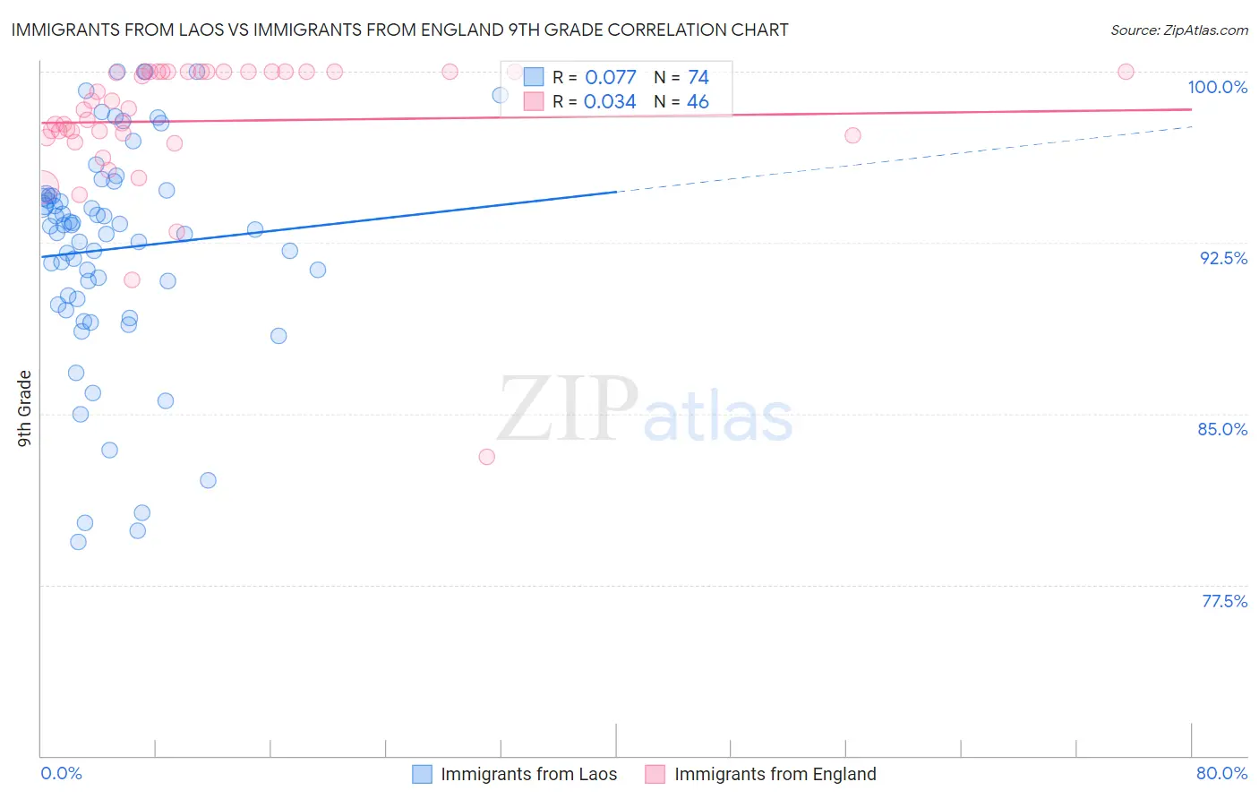 Immigrants from Laos vs Immigrants from England 9th Grade Correlation Chart