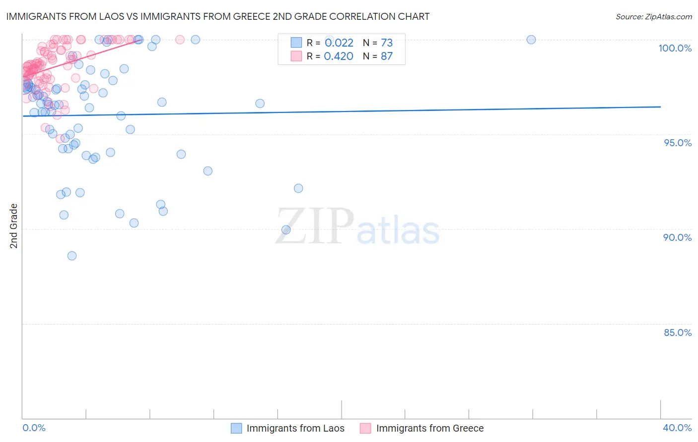 Immigrants from Laos vs Immigrants from Greece 2nd Grade Correlation Chart
