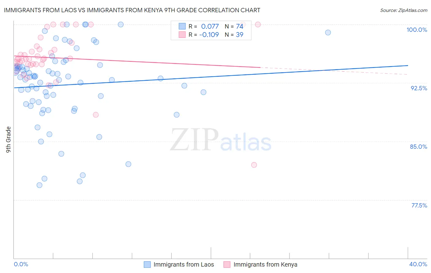 Immigrants from Laos vs Immigrants from Kenya 9th Grade Correlation Chart