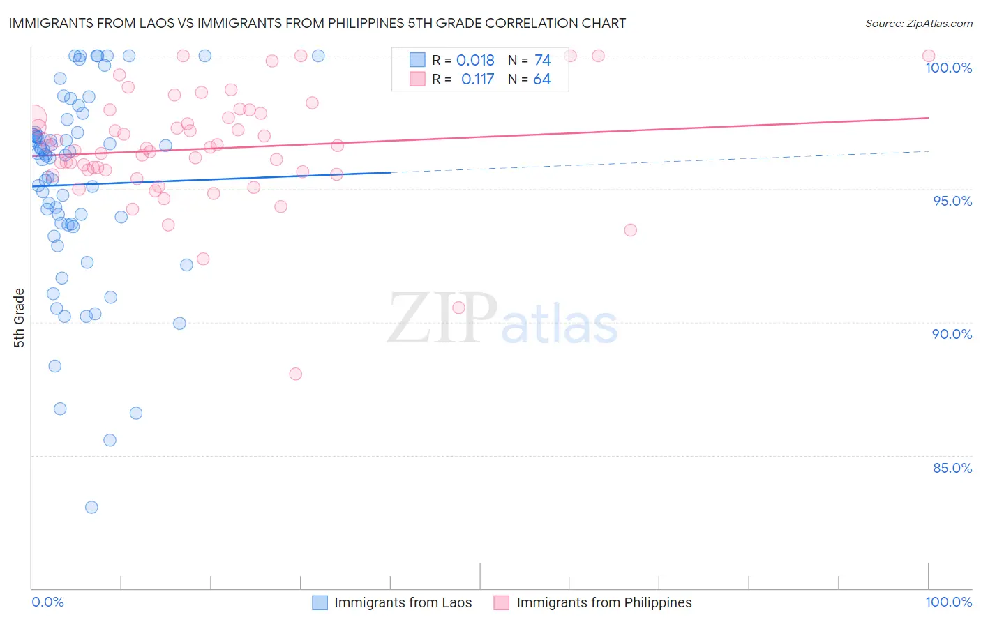 Immigrants from Laos vs Immigrants from Philippines 5th Grade Correlation Chart