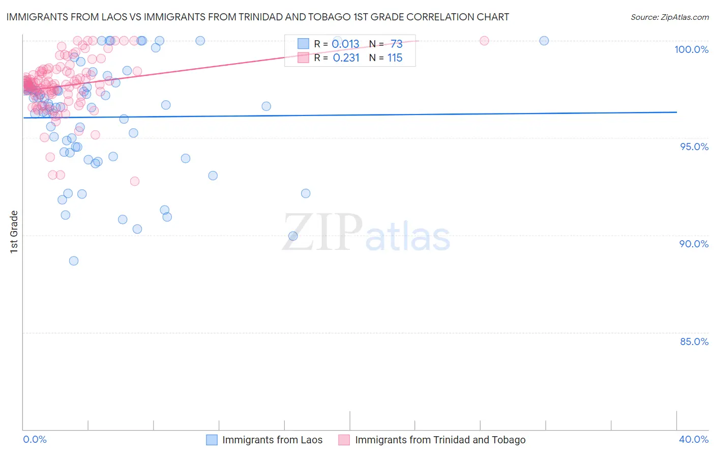 Immigrants from Laos vs Immigrants from Trinidad and Tobago 1st Grade Correlation Chart