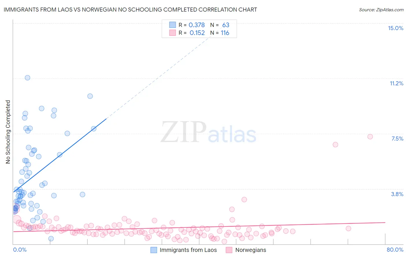 Immigrants from Laos vs Norwegian No Schooling Completed Correlation Chart