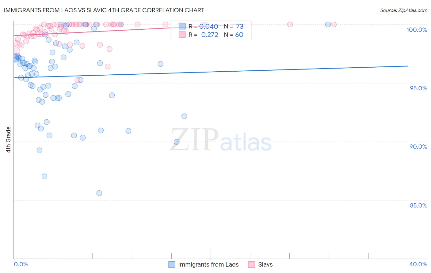 Immigrants from Laos vs Slavic 4th Grade Correlation Chart