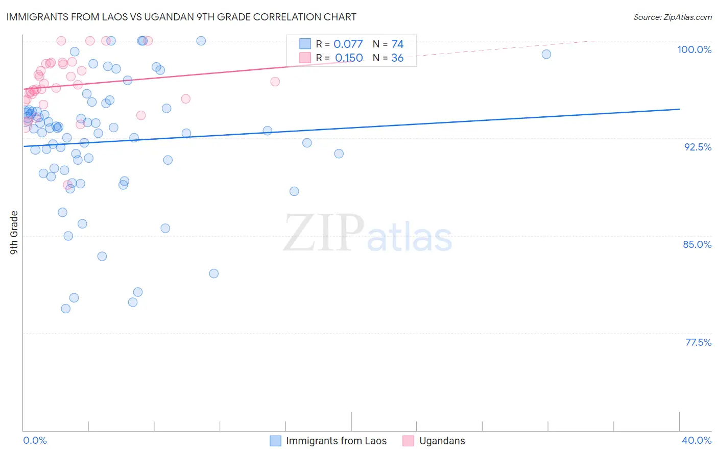 Immigrants from Laos vs Ugandan 9th Grade Correlation Chart