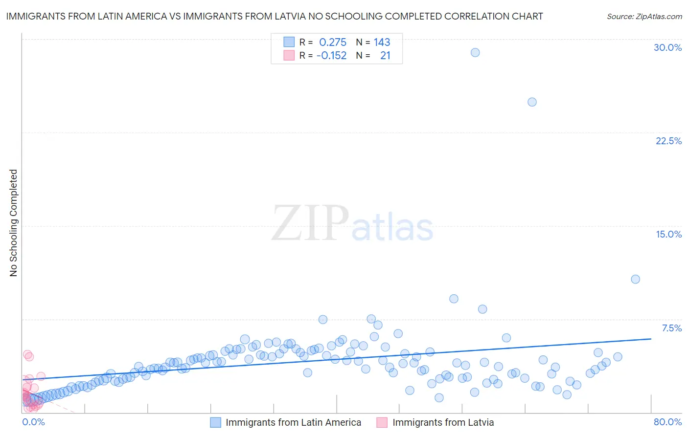 Immigrants from Latin America vs Immigrants from Latvia No Schooling Completed Correlation Chart