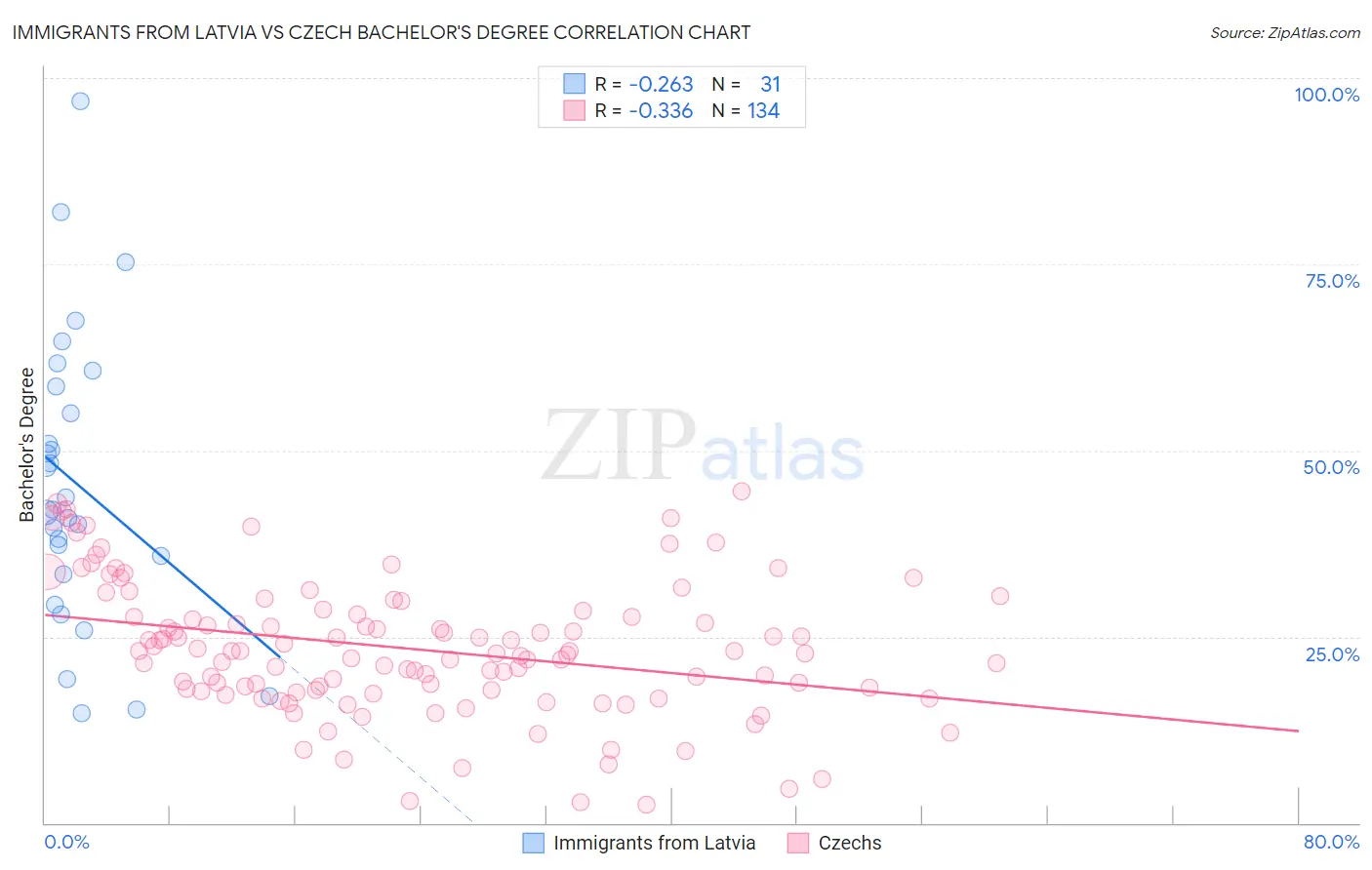Immigrants from Latvia vs Czech Bachelor's Degree Correlation Chart