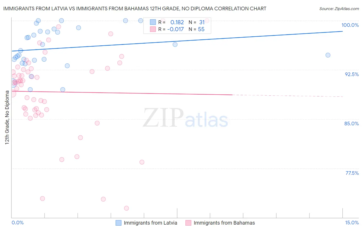 Immigrants from Latvia vs Immigrants from Bahamas 12th Grade, No Diploma Correlation Chart