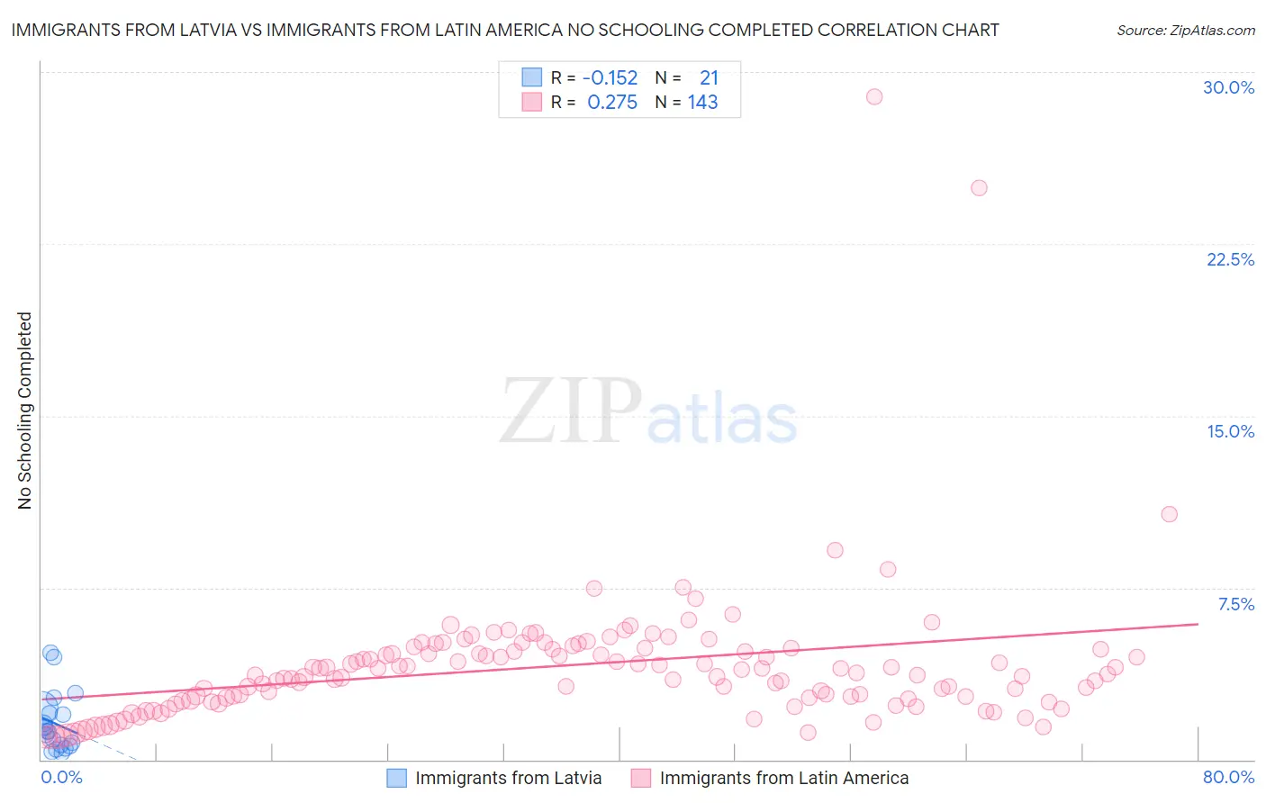 Immigrants from Latvia vs Immigrants from Latin America No Schooling Completed Correlation Chart