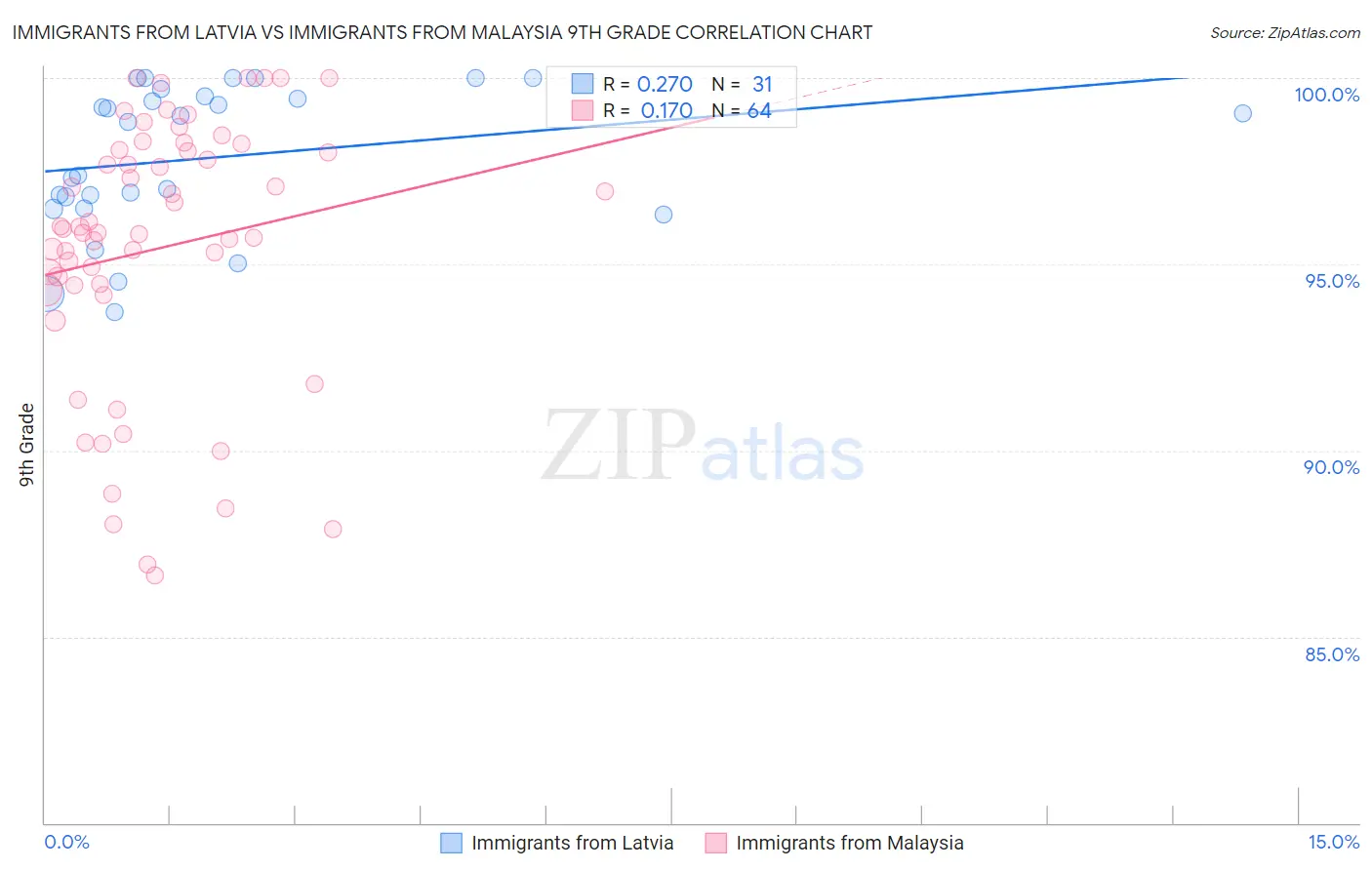 Immigrants from Latvia vs Immigrants from Malaysia 9th Grade Correlation Chart