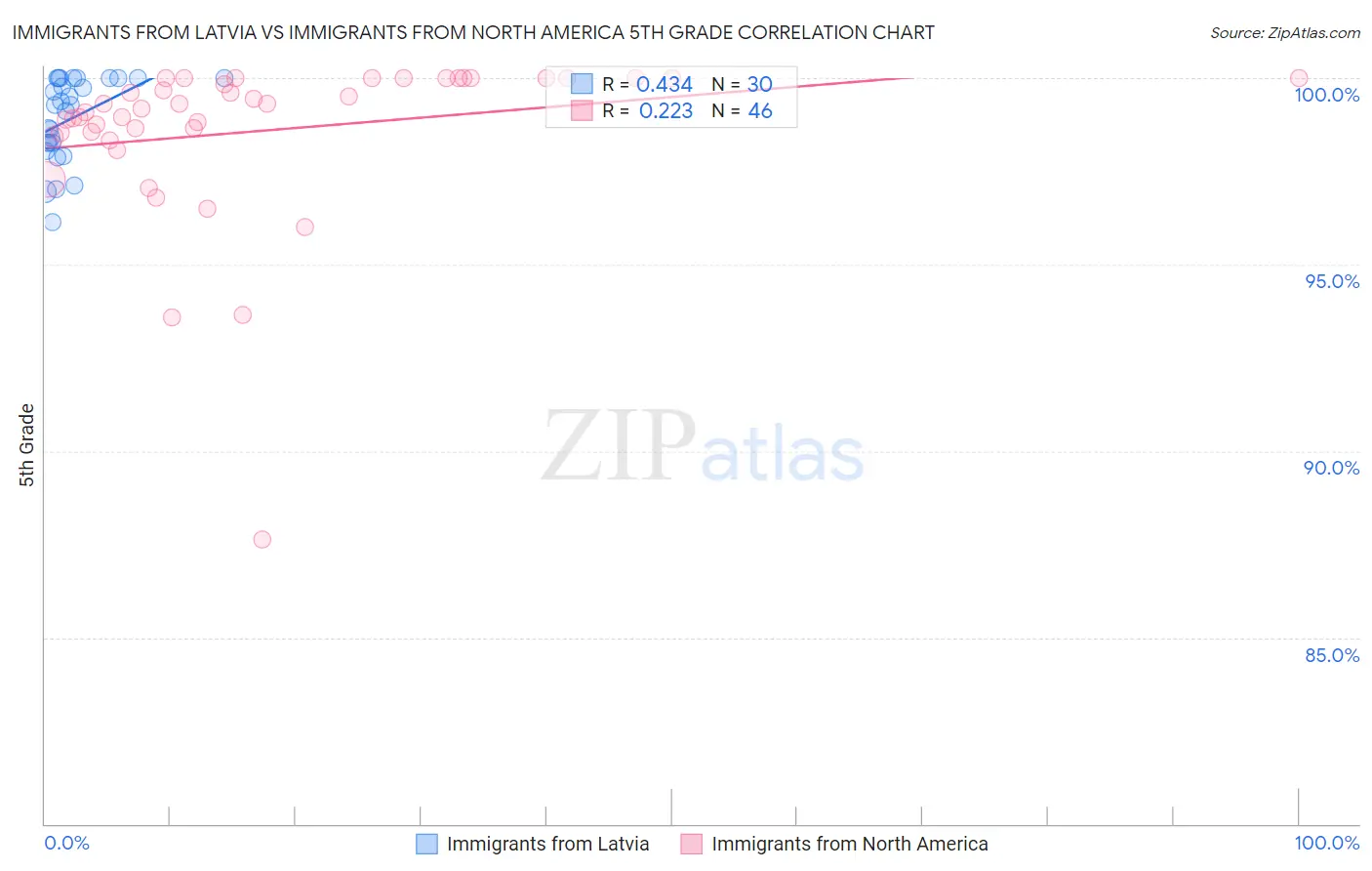 Immigrants from Latvia vs Immigrants from North America 5th Grade Correlation Chart