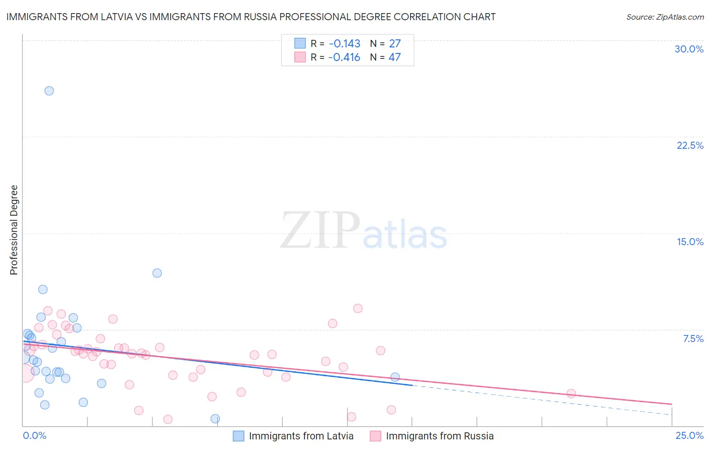 Immigrants from Latvia vs Immigrants from Russia Professional Degree Correlation Chart