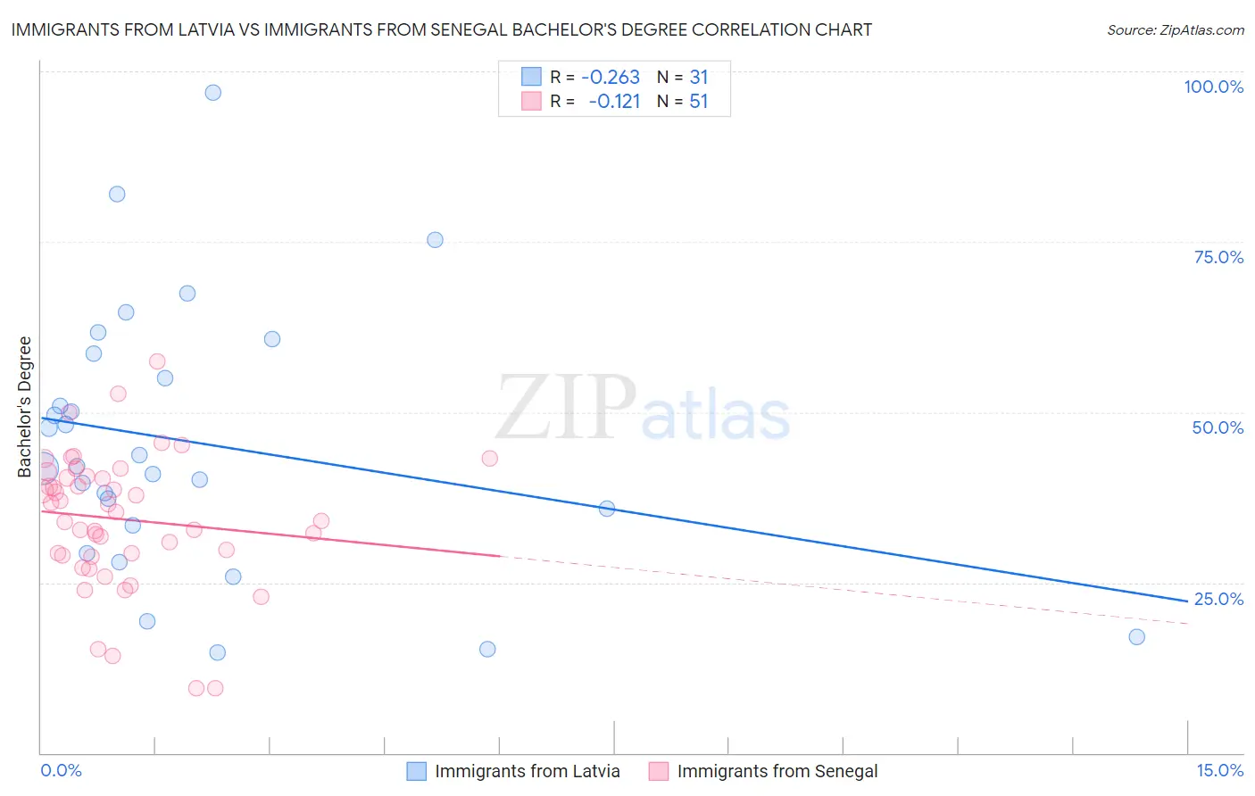 Immigrants from Latvia vs Immigrants from Senegal Bachelor's Degree Correlation Chart