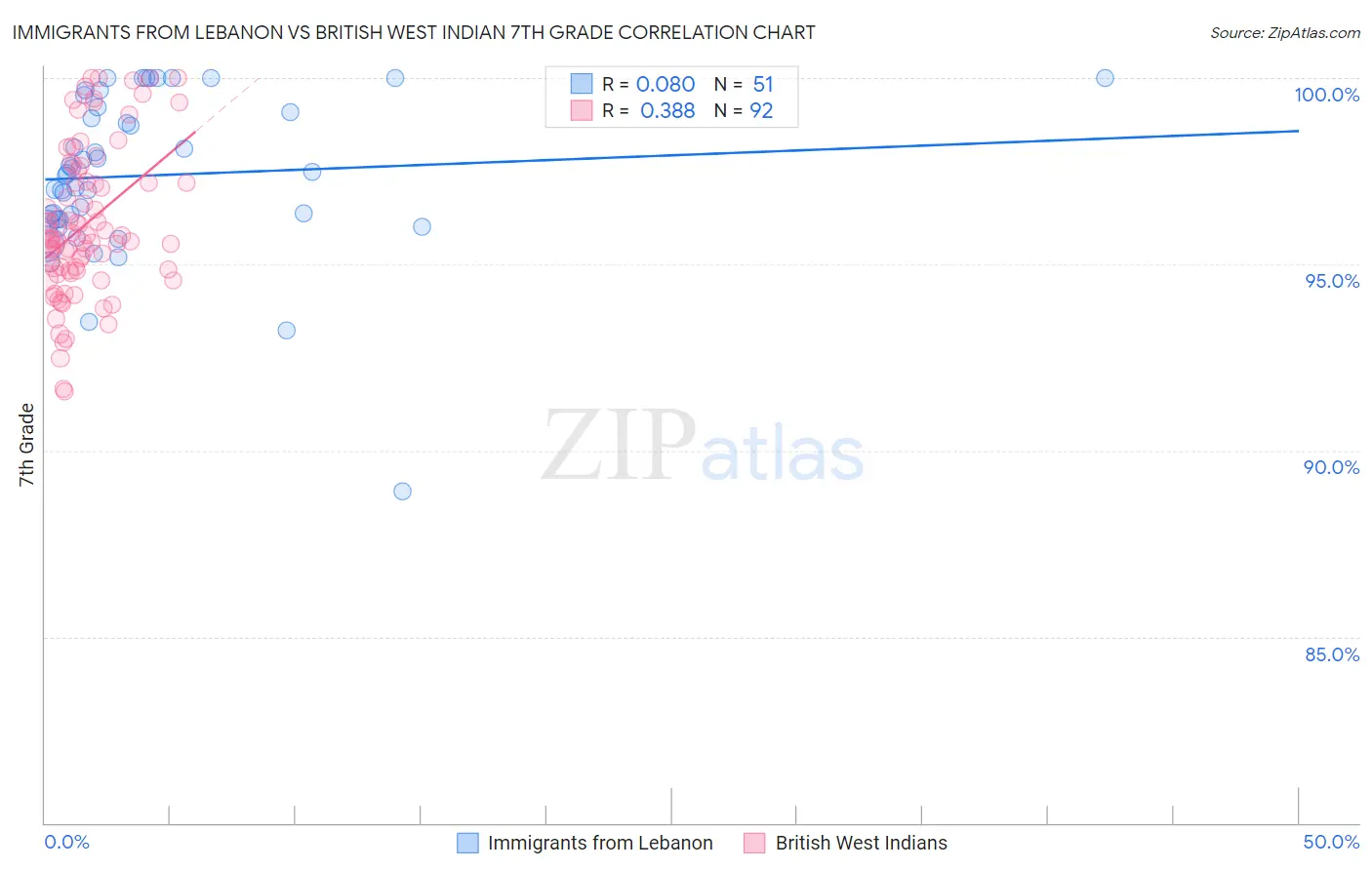 Immigrants from Lebanon vs British West Indian 7th Grade Correlation Chart