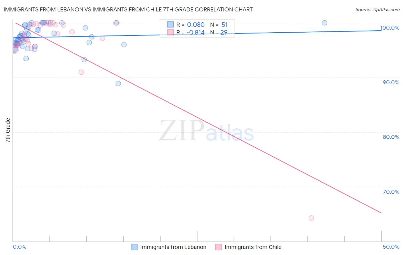 Immigrants from Lebanon vs Immigrants from Chile 7th Grade Correlation Chart